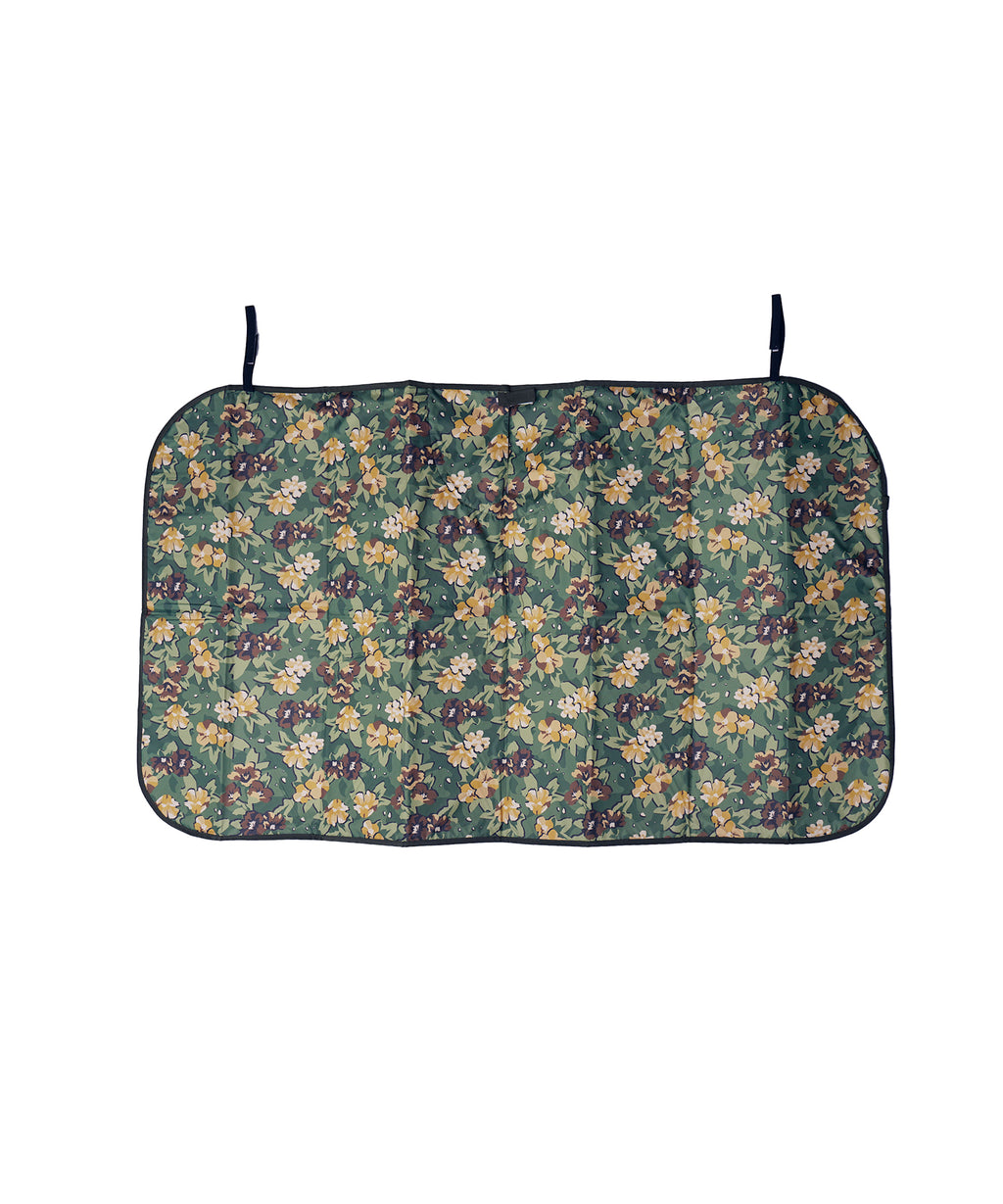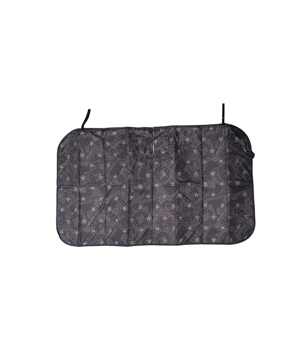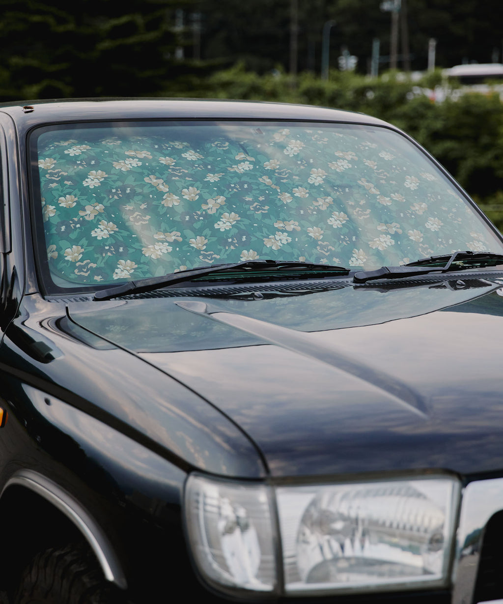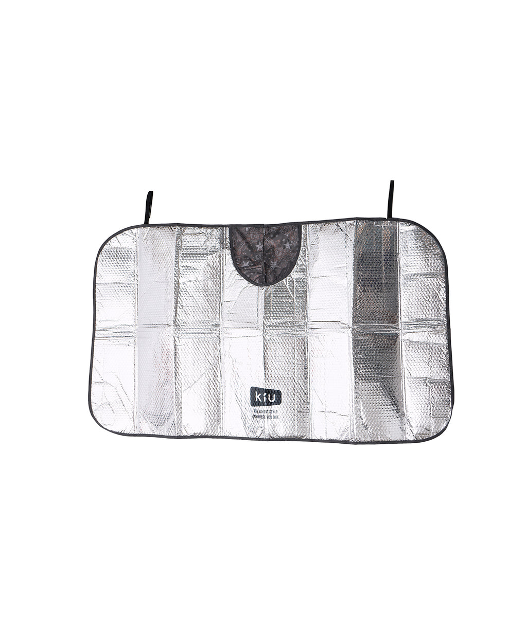 蛇腹式のシンプルな車用サンシェードに、KiUのポップな柄を全面にプリントしました。上部中央に切れ目があるのでバックミラーを傷付けることなく装着可能。