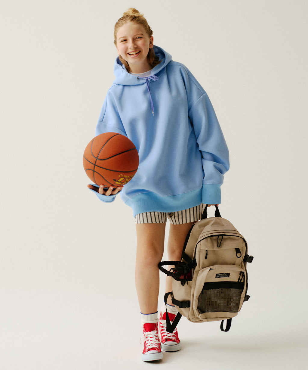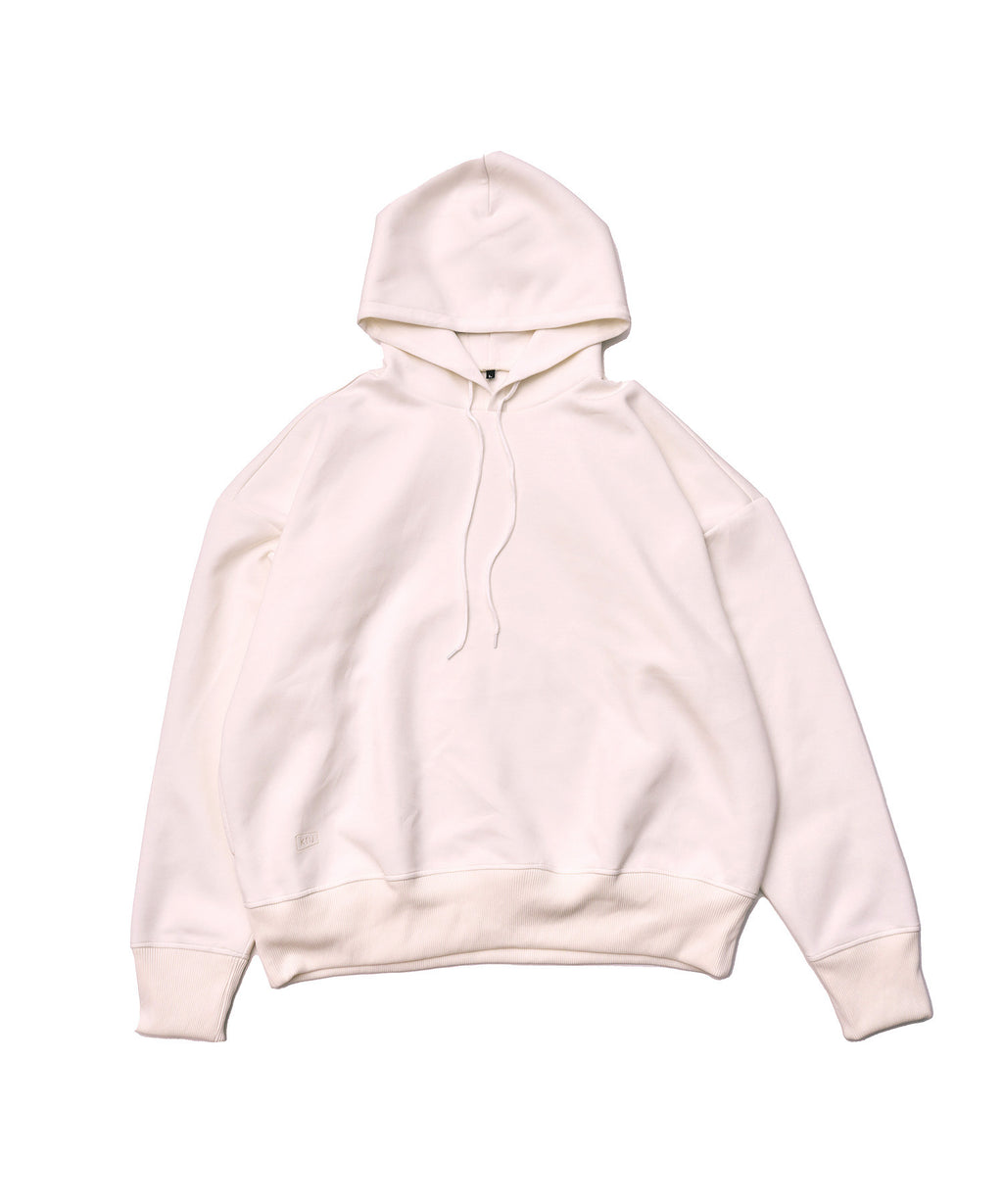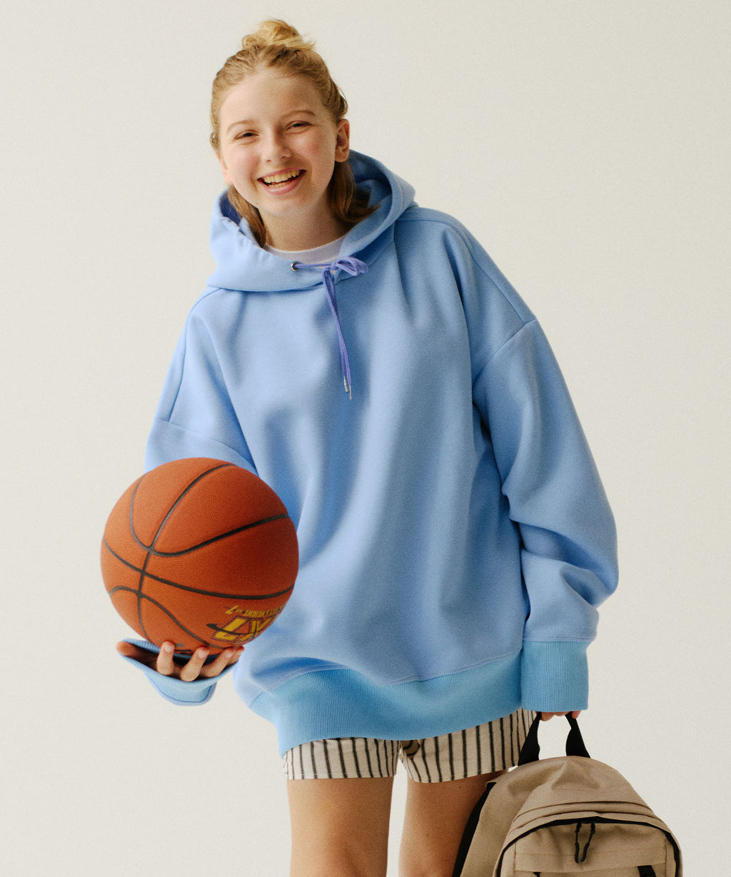 ボックスシルエットでたっぷりと長さのある袖が特徴のパーカーです。