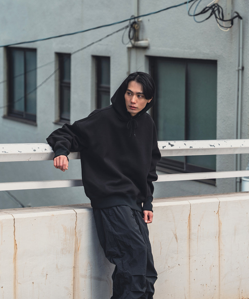 小雨や汚れも安心。リラックス感ある着心地の長袖パーカー